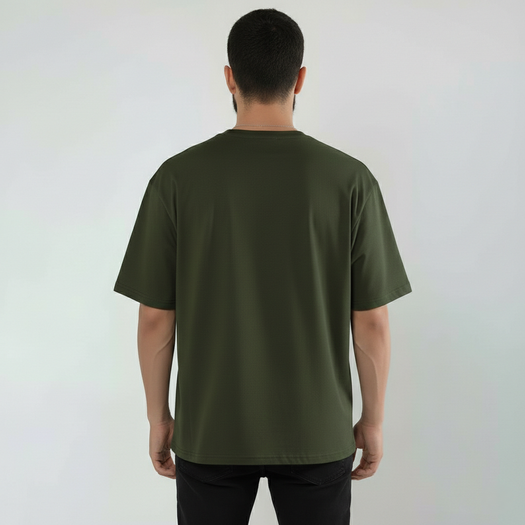 Premium Cotton Terry Round Neck Olive Green T-Shirt